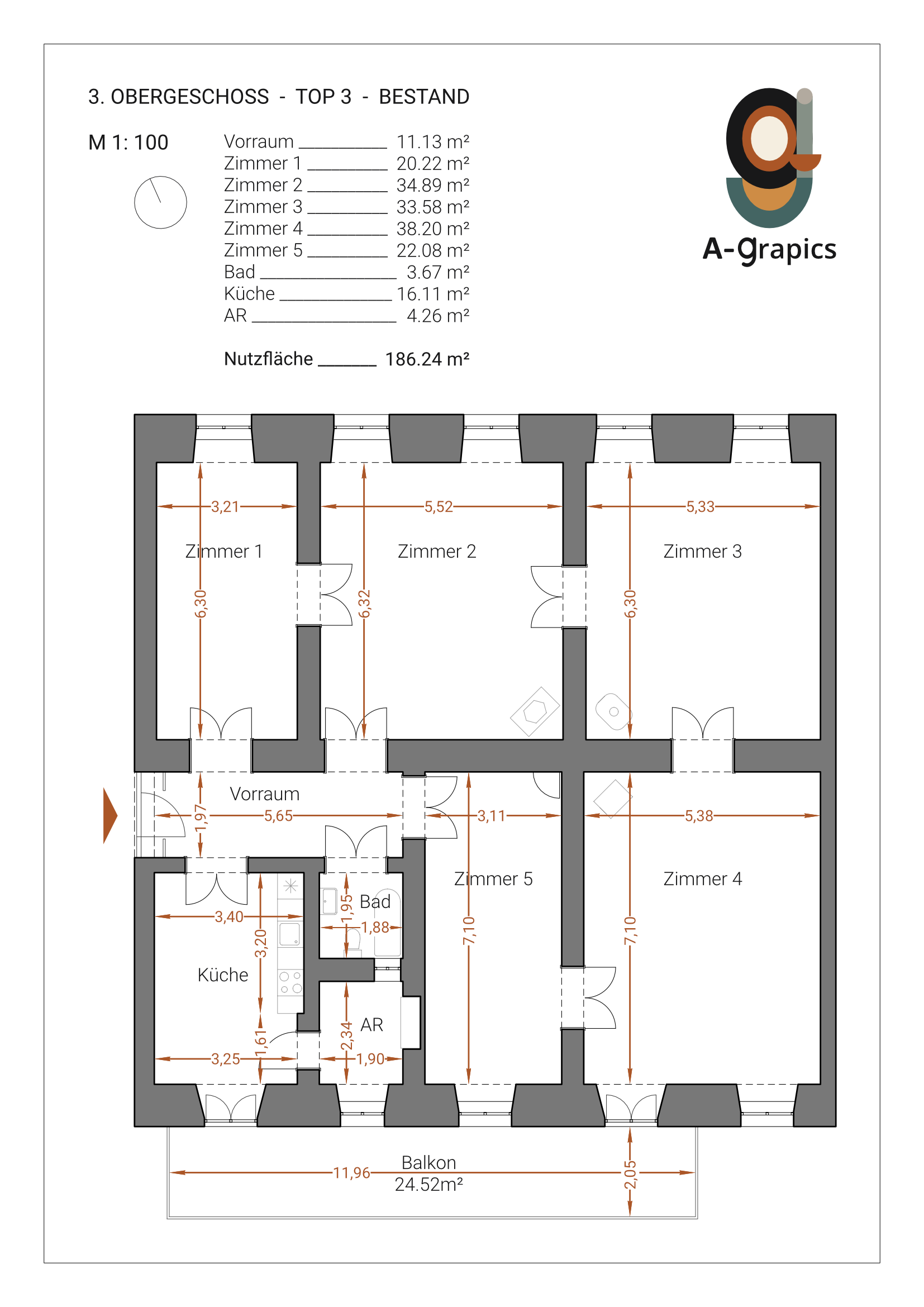 Bestandspläne enthalten detaillierte Informationen in ansprechendem Design zur räumlichen Organisation und zur bestehenden Ausstattung Ihrer Immobilie.